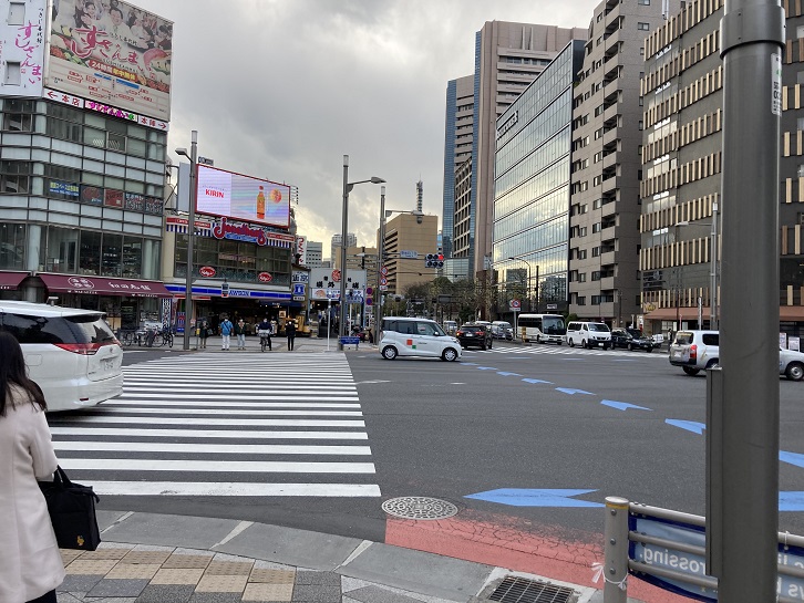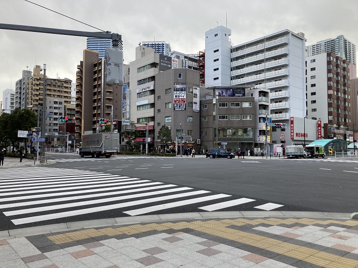 勝どき駅前交差点を左折し、清澄通りに入ります。かって交差点近辺には「月島通八丁目電停」があり、通常運転の11系統の終点になっていました。