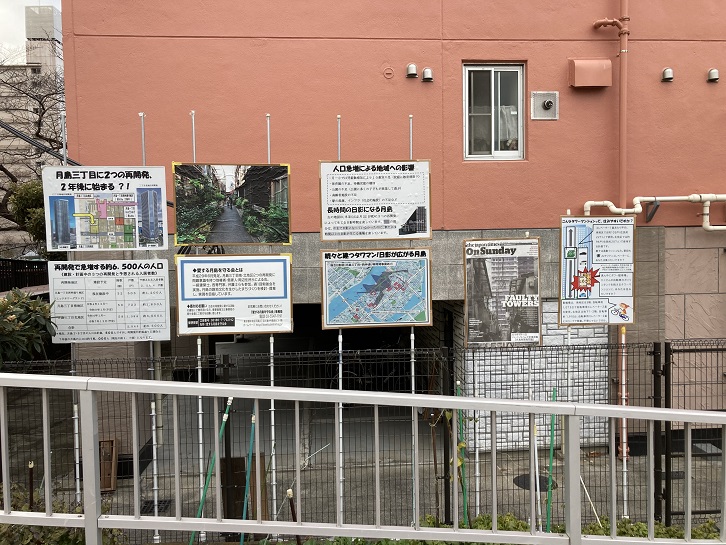 月島橋の袂に、「愛する月島を守る会」の張り紙がありました。都心に近い月島地区には、最近になって超高層マンション、いわゆるタワマンが林立しています。地元民でないと分りませんが、環境・騒音・日照・学校などの問題が山積しているようです。昔は長閑な下町だったのでしょうけど。
