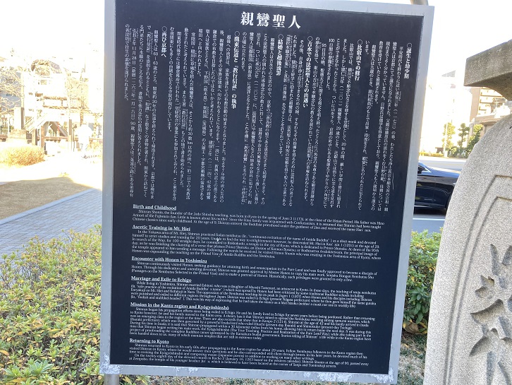 Shinran began his propagation efforts since being exiled to Echigo. He and his family lived in Echigo for seven years before being pardoned. Rather than returning to Kyoto however, he and his family moved to the Kanto area. A theory has it that Shinran aimed to spread the Nembutsu teaching among samurai warriors, which was an emerging class in the region at the time. There are also records that show that in Kempo 2 (1214), Shinran at the age of 42 and his family arrived in Inada (Ibaraki prefecture), which was then governed by a powerful feudal lord who ruled Hitachi (present-day Ibaraki) and Shimotsuke (present-day Tochigi). During his time in Inada, it is said that Shinran propagated within a 30 kilometer radius from his home, allowing him to return home the next day. It was during this time that Shinran began writing his main work, the Kyogyoshinsho (The True Teaching, Practice and Realization of the Pure Land Way), while also taking part in the project of proofreading the complete Buddhist canon sponsored by the Kamakura feudal government. Stories telling of Shinran' s life while in the Kanto region have been handed down to us, many of which mention temples that are still in existence today.