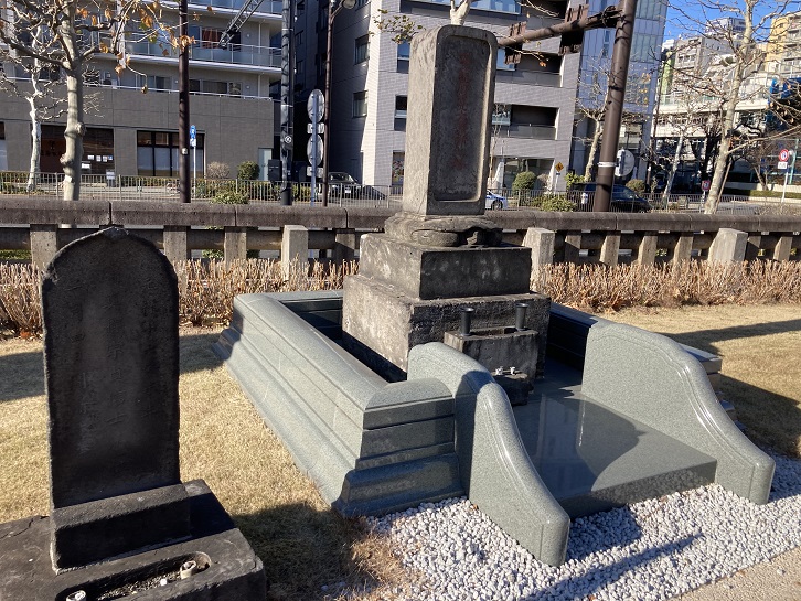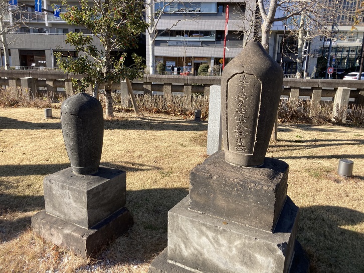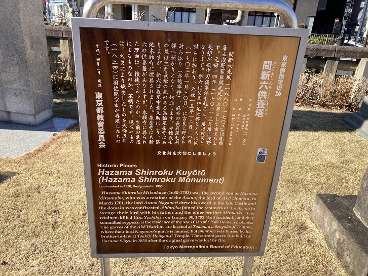 間新六は高輪泉岳寺にもお墓がありますが、実際は築地本願寺に埋葬されたんですね。他の四十七士と一緒になるよう泉岳寺にも供養墓が置かれたのでしょう。