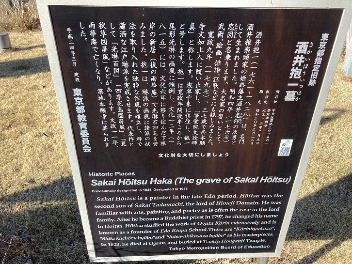 お墓巡りにも疲れてきました。最後は「酒井抱一」のお墓です。