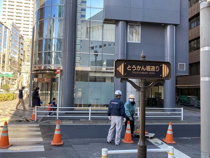 蛎殻町(かきがらちょう)交差点の東側に、ビルに挟まれた「とうかん掘通り」という道路があります。「掘」と付くからにはかっての掘の後にできた道路と思われます。「とうかん」って変な名前ですね。調べてみましたら、漢字で「稲荷」と書くんだそうです。「とうかん掘通り」とは「稲荷掘通り」のことだったんですね。