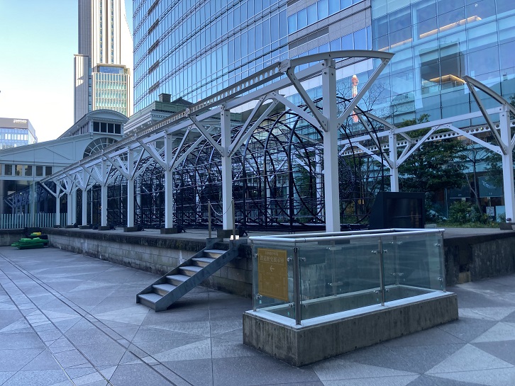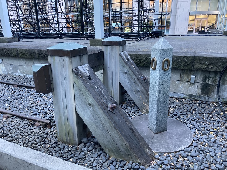 This spot is where the first stake was driven at the survey starting point on 25 April 1870. In 1936, the government railways reproduced Mile Marker Zero with a short section of the original track as the birthplace of Japanese railways. The former Japanese National Railways (JNR) designated Mile Marker Zero as a Railway Memorial on 14 October 1958. On 12 May 1965, the government designated it as a national historic site called the Original Starting Point of the Former Shimbashi-Yokohama Railway.