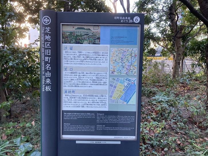 国道15号第一京浜の脇に芝地区旧町名由来板が立っています。案内板は全部で20ヶ所あるそうですが、幾つかは見ましたが他にはどこにあるのだろう?