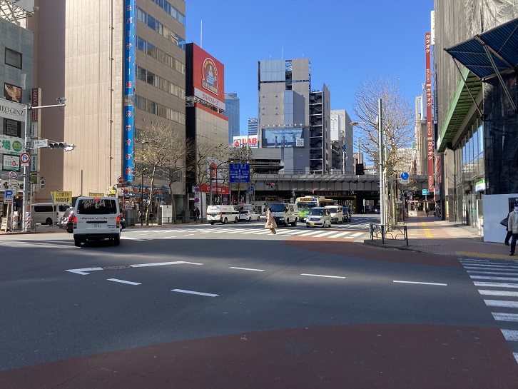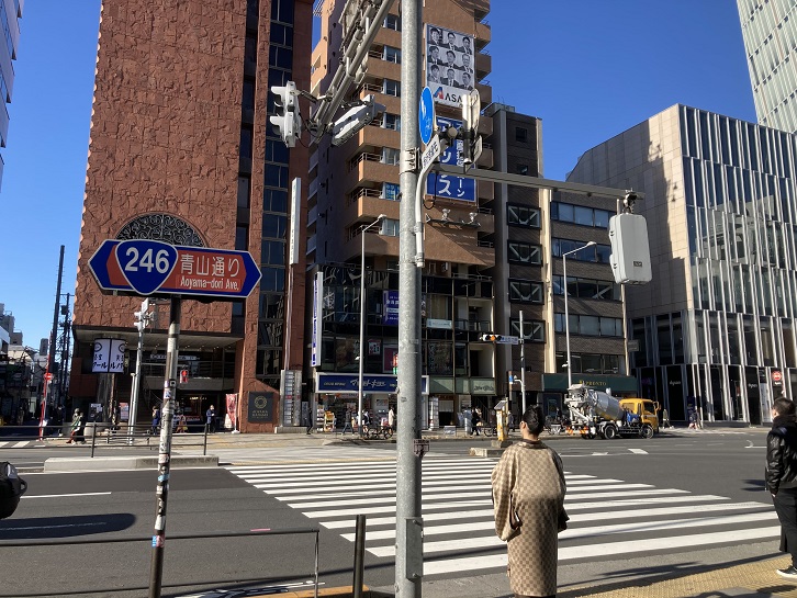 青山五丁目交差点を左折し、青山通り(国道246号線)に入ります。