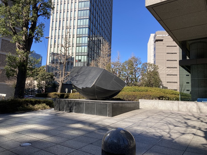 虎ノ門交差点の先の緑地にふたつのモニュメントが置かれています。