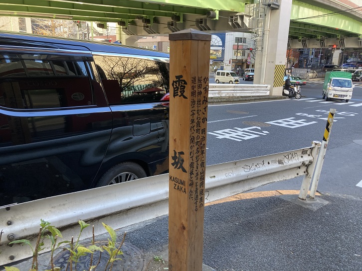明治初年に霞山稲荷(現在の桜田神社)から霞町の町名ができ、そこを貫通する道が明治二十年代に開かれて霞坂と呼んだ。