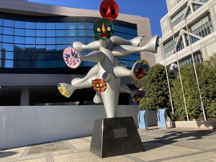 国連大学の隣の広場に見たことのあるような大きなオブジェが立っています。大阪万博の会場にもあった奇妙な形のモニュメントに似ています。作者はやはり岡本太郎で、テーマは「こどもの樹」だそうです。どう見ても太陽の塔にしか見えませんが。ここには「旧こどもの城(正式名称は国立総合児童センター)」という施設がありました。都電青山車庫に隣接し、都電廃止後は都バス車庫として使用され、再開発によってこどもの城や国連大学が建設されました。空調や電源設備の更新のほか耐震補強など改修を行う場合に巨額の費用がかかることと、自治体における児童館の整備も進んだことから、平成二十七年(2015年)に閉館しました。現在は敷地全体が工事用の板塀に囲まれています。今後は複合スペース「都民の城(仮称)」として、「遊び・学び・仕事を通じて、子どもをはじめとした都民が交流・成長できる場」をコンセプトに100億円以上をかけてリノベーションし、2023年から活用されるとのこと。ただ、6年後には取り壊されることになりそうとのこと。勿体ない。。。