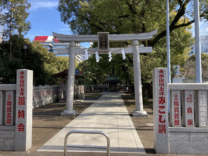 子育地蔵菩薩の向かいに小さな神社が祀られています。増上寺境内に神社とは不思議な気もしますが、かなり特殊な神社のようです。