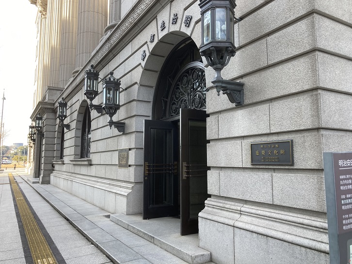 明治生命は業務の拡大に伴い、新社屋を昭和九年(1934年)3月31日に竣工しました。しかし、太平洋戦争の終戦と共に連合国軍最高司令官総司令部(GHQ)に接収され、アメリカ極東空軍司令部として使用されました。昭和三十一年(1956年)、アメリカ軍から返還され今日に至っています。明治生命館は5階分のコリント式列柱が並ぶ古典主義様式に則ったデザインになっていて、戦前の面影を残す丸の内の数少ない建物のひとつになっています。