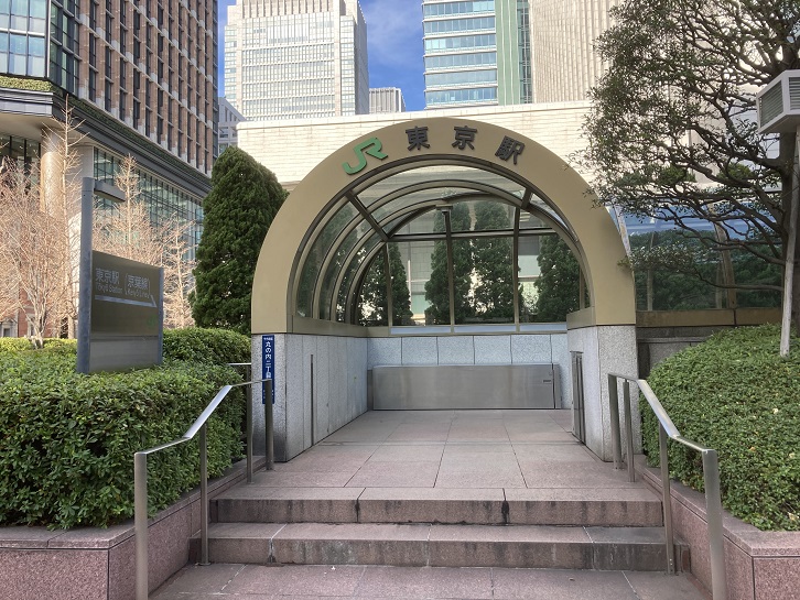 鍛冶橋通りに面してJR京葉線の東京駅があります。駅舎もなく地下への入口だけですが、京葉線は鍛冶橋通りの地下を通っていますので、乗り場としてはここが一番近いのです。成田新幹線の施設を転用した地下4階のホームは海抜マイナス29mでJRでもっとも低い駅となっています。