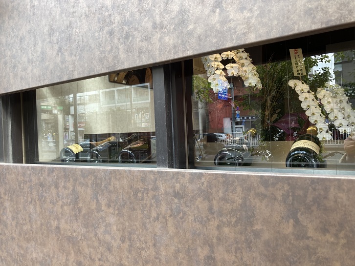 道路に面してワインのお店があります。気軽に入れるような雰囲気ではありませんが、高そうなシャンパンが窓辺に並んでいます。ワインクーラーに入れておいた方が良さそうですが。