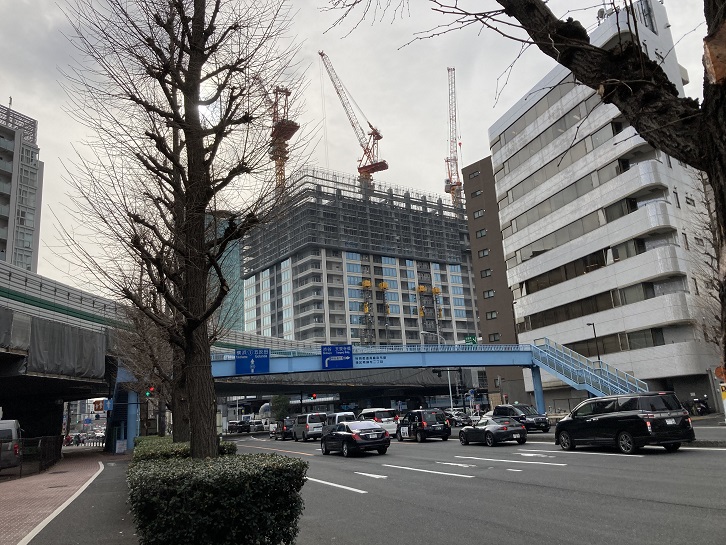 国道1号線は高輪台交差点で南西方向に向きを変え、五反田駅までの長い坂を下ります。昔は坂の途中にセメダインの本社があり、五反田駅からも屋上の社名の看板が目立っていました。今は大崎に移転し、跡地はマンションになったらしいです。