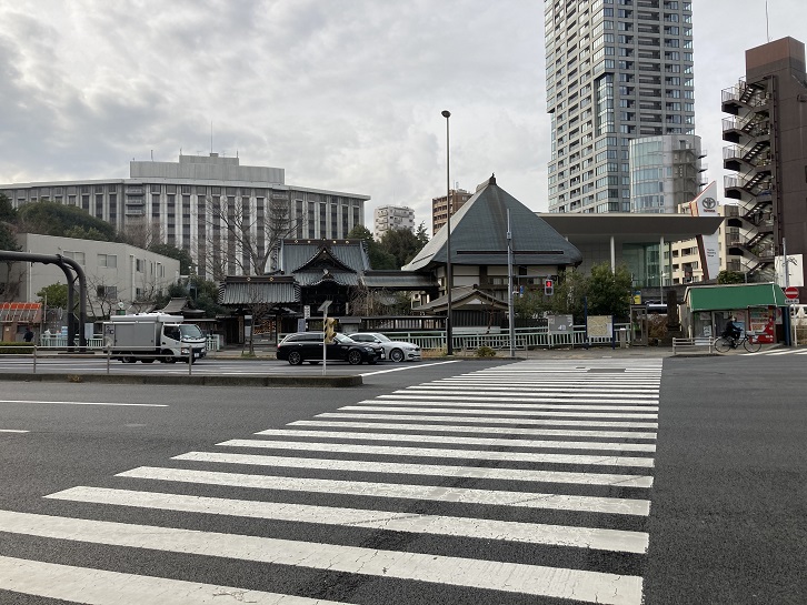白金高輪駅の前で国道1号線に入ります。清正公前交差点で目黒通りが分離しますが、こちらにも目黒駅から永代橋までの区間を繋いでいた都電5系統が走っていました。ちなみに、清正公前交差点の名前は戦国時代の武将であった加藤清正に由来します。加藤清正は豊臣秀吉と同郷で今の名古屋市出身です。地元ではそれほど人気が高くなく、領地だった熊本県で絶大な人気があります。民政家としても優秀だった清正は領民から大層慕われましたが、息子の忠広の代に江戸幕府によって取り潰しに遭います。これを悼んだ領民たちが清正が祟りを起こさないようにということで、清正公(せいしょうこう)と呼び、神として祀ったのです。清正公交差点の脇に清正公を祀った覚林寺がある理由は、元々この地に加藤氏の後に熊本を拝領した細川氏の藩邸があったからです。新しい領地に赴任した細川家の殿様の細川忠利は領民が清正を慕う姿を見て、領民と融和を図るため清正公信仰を応援し、江戸屋敷の敷地内にも覚林寺を建立して清正公を祀ったのです。