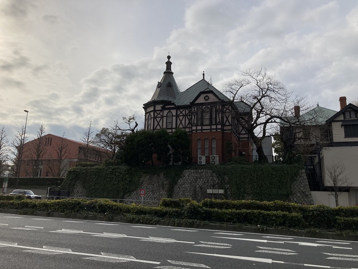 源昌寺の斜め向かいに明治学院大学の古風な建物が見えます。明治二十三年(1890年)に建てられたネオゴシック様式の明治学院記念館でしょうか?ちなみに、明治学院大学を創設したヘボン博士は、ヘボン式ローマ字を創始したことでも知られています。