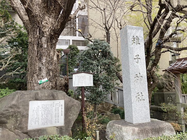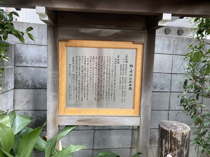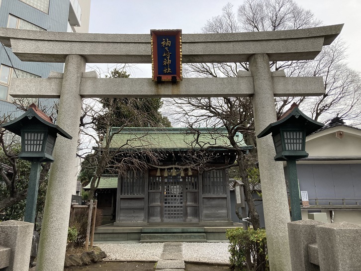 左手にふたつの神社が並んでいます。袖ヶ崎神社は保延元年(1137年)に創建され、江戸時代には神社の周辺に各藩の江戸下屋敷が多かったことから、多くの各藩関係者が参詣に訪れたそうです。