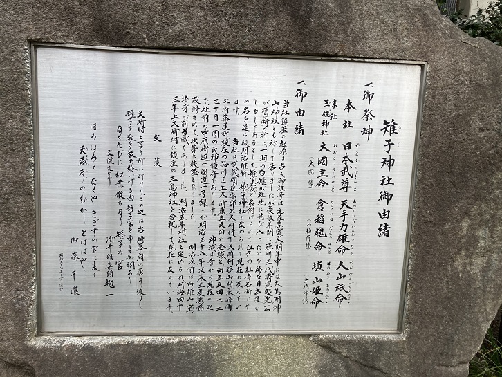 その隣には雉子神社があります。神社の名前は、徳川三代将軍家光によって命名されたそうです。