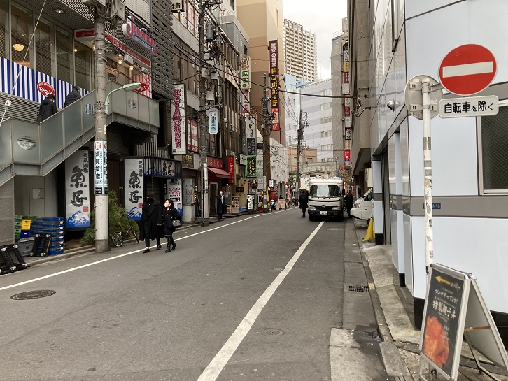 東京オイスターバーの左手には、五反田有楽街に続く路地が延びています。五反田有楽街は山の手線沿線有数の歓楽街として知られています。国道1号線の向かい側には、旧正田邸もあった城南五山(池田山・島津山・御殿山・花房山・八ツ山)のひとつである池田山の高級住宅地が拡がっています。両者のコントラストが際だっていますね。