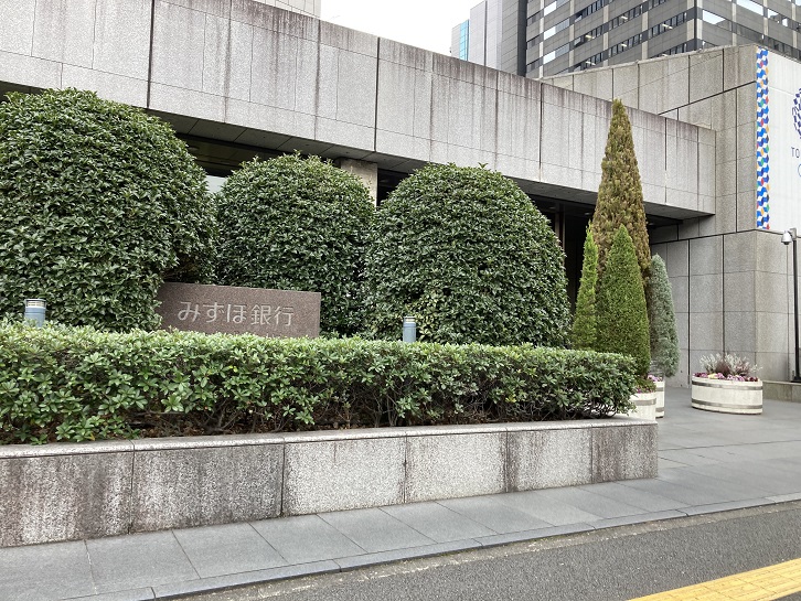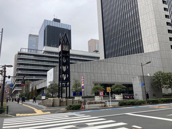 内幸町交差点の角にはみずほ銀行の本店ビルが聳えています。入り口前は東京マラソンの給水ポイントにもなりましたね。紙コップに入れた水をテーブルから取るんですけど、走りながらでは一口飲むのが精一杯で残った水はコップもろとも回収容器に捨ててしまいました。ボランティアさんに申し訳なかったです。建物脇の半地下には宝籤売場がありますが、私はジャンボ宝くじで一回も当ったことはありません。