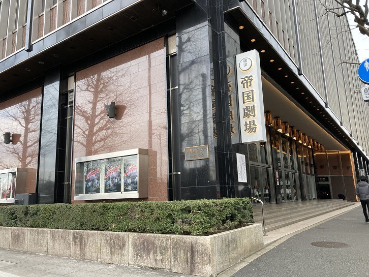 日比谷交差点の先には、帝国劇場が入っているビルがあります。初代の建物は横河民輔の設計によるルネサンス建築様式の劇場として、明治四十四年(1911年)に竣工しました。現在の複合ビルディング形式のビルは谷口吉郎の設計で昭和四十一年(1966年)に落成しました。昭和四十四年(1969年)から昭和五十九年(1984年)までの歌謡曲全盛期には「日本レコード大賞」の発表会も行われました。