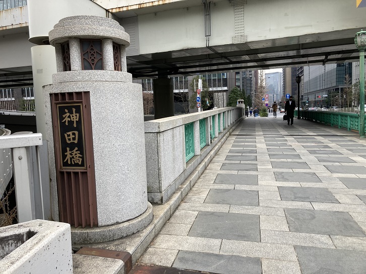 神田橋交差点の次は錦町河岸(にしきちょうがし)交差点になります。交差点の直ぐ近くには日本橋川に架かる錦橋があり、神田錦町と皇居前方面を結んでいます。神田錦町の語源は、付近に一色姓の武家屋敷が2軒並んでいたことから「二色町」となり、それが転じて「錦町」になったといわれています。江戸時代中盤から明治初期にかけては、この錦町のあたりは通称「護持院ヶ原」と呼ばれた広大な火除地で、非常に寂しいところとして知られていました。