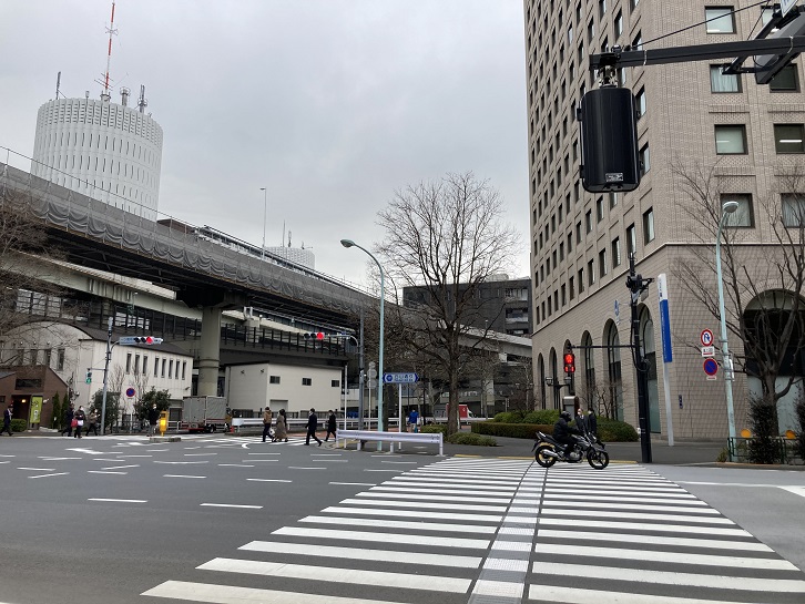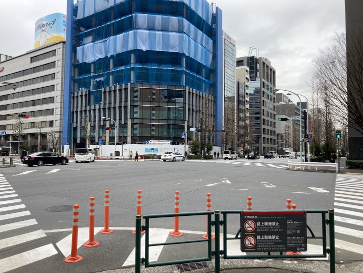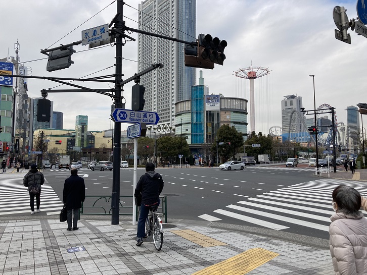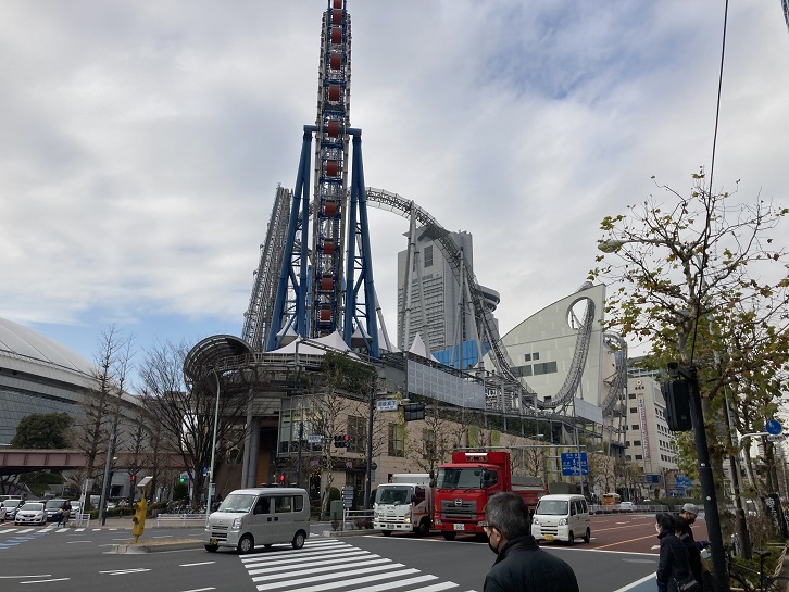 交差点の左手先には後楽園遊園地があります。コロナ禍は未だ収まりませんが、ジェットコースターからは悲鳴が聞こえてきます。ウイルスが飛び散らなければいいのですが。