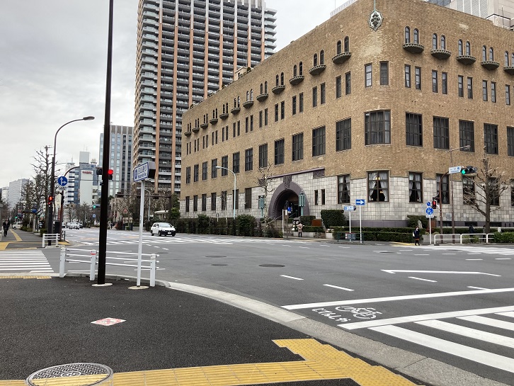 交差点の角には如水会館の建物があります。如水会館は、一橋大学の後援等を目的とする一般社団法人如水会(じょすいかい)が所有しています。「如水会」の名は、「礼記」の「君子交淡如水」(君子の交わりは淡きこと水の如し:才徳のある者の交際は水のようにさっぱりしており、濃密ではないが長続きする)に由来し、会員同士の良き交流が継続することを期して付けられました。命名者は大河ドラマ「青天を衝け」の主人公であり、新一万円札の顔としても注目される渋沢栄一です。渋沢栄一は如水会の名誉社員にもなっています。