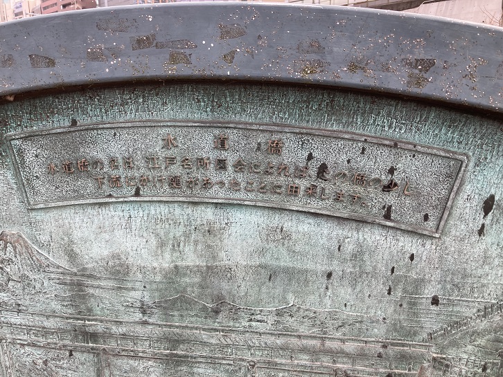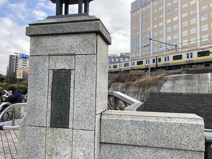 水道橋の名は、江戸名所図会によれば、この橋の少し下流にかけ樋があったことに由来します。