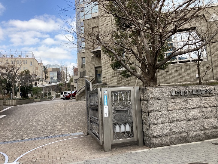 交差点の右手先には東京工芸高校があります。都立高校にしては大きな校舎です。通常、工業高校は男子生徒の在籍率が高いのですが、ここはデザイン系の学科が多い関係上、在籍する生徒の約8割が女子生徒で占められているとのことです。卒業生には芸術関係の有名人が多いですね。東京工芸高校の裏手は高台になっていて、その上に桜蔭学園の校舎が建っています。中高一貫の女子校で、中学入試では女子学院中学校・雙葉中学校と共に「女子御三家」といわれています。