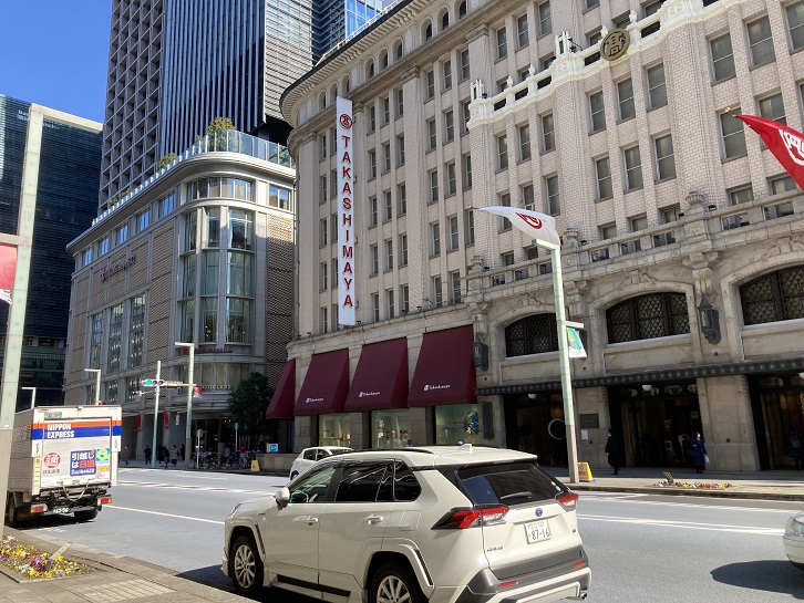 日本橋交差点の手前に高島屋があります。三越と並び称される老舗のデパートです。地下の食品街にはよく行きましたね。ワインの贈り物をする際は、やはり高島屋の包み紙でないとね。