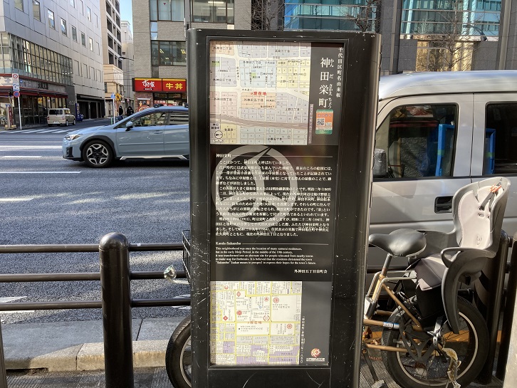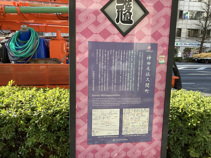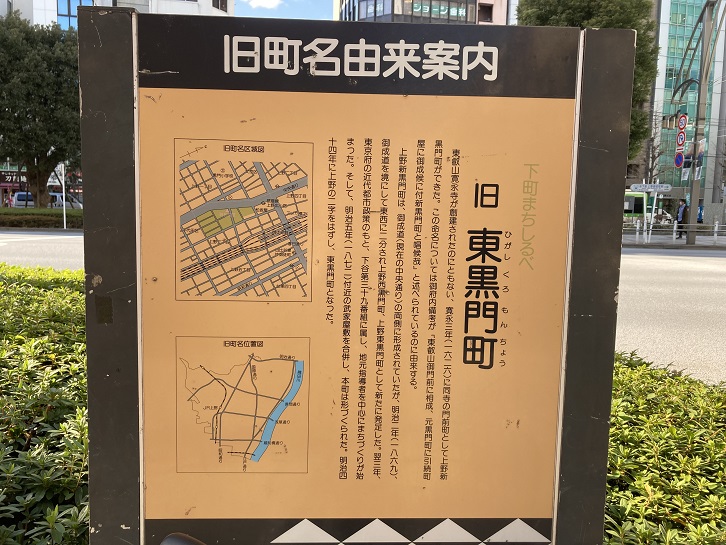 更に町名の由来板が続いて立っています。町名にはいろんな歴史があるんですね。神田元佐久間町は現在の千代田区、旧東黒門町は現在の台東区にありました。