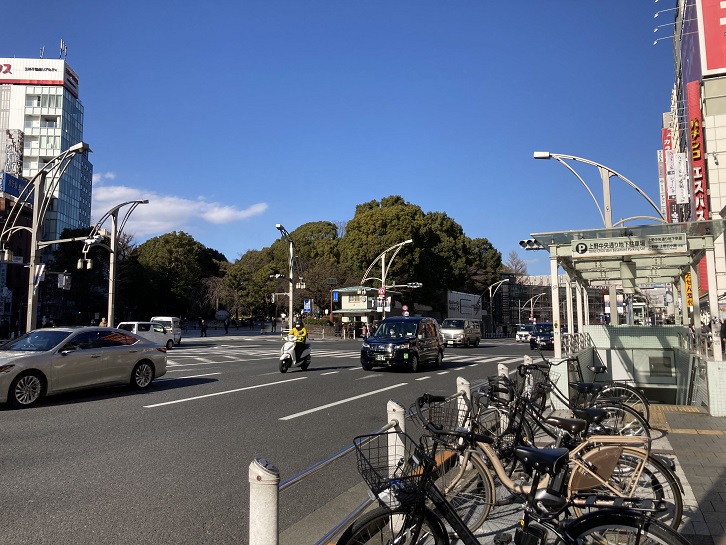 都電1系統は上野公園の脇を右にカーブして終点の上野駅に向います。