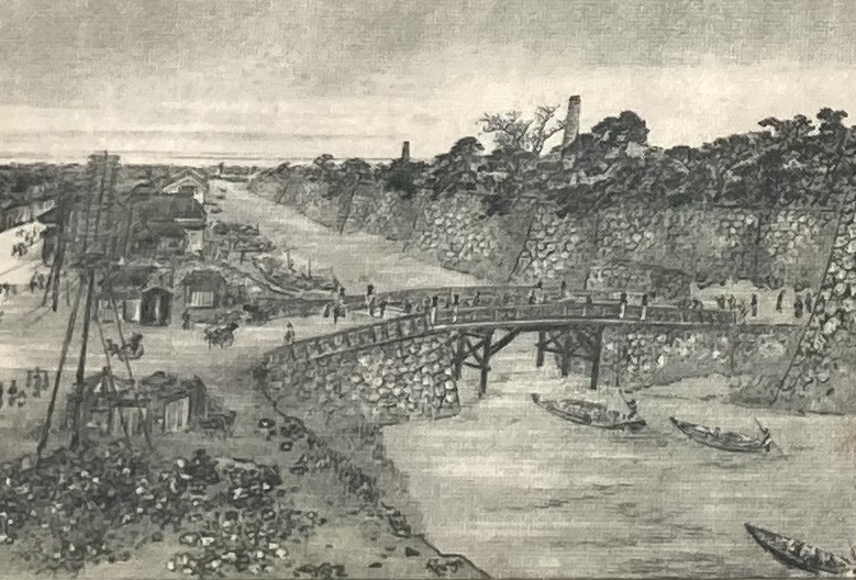 江戸時代、神田橋のたもとのこの界隈には、荷揚げ場がありました。徳川家康は、江戸に入るとすぐに江戸城の築城と町づくりを始め、城を囲む御堀(現・日本橋川)はそのための建築資材などを運ぶ水路として活用されました。古い地図を見ると、神田橋付近に「かしふねあり」と記され、ここが水運の拠点だったことがわかります。神田橋は江戸城外郭門のひとつで、上野寛永寺や目光東照営への御成道(将軍の参詣経路)となっていました。このような要所であったため、ここには明治のころまで建造物は何もありませんでした。明治初期の地図には交番と電話があるだけです。明治五年(1872年)、いったん美土代町となりますが、空き地の状態は第二次世界大戦後まで続きました。そして昭和四十一年(1966年)、内神田一丁目に編入されました。昭和五十八年(1983年)、神田橋土木詰所の敷地となっていたこの場所に、内神田住宅が完成すると九十世帯が住むようになり、平成五年(1993年)、千代田区のもっとも新しい町会として、内神田住宅町会が誕生しました。さらに平成十六年(2004年)、町会名は神田橋町会と変わりました。