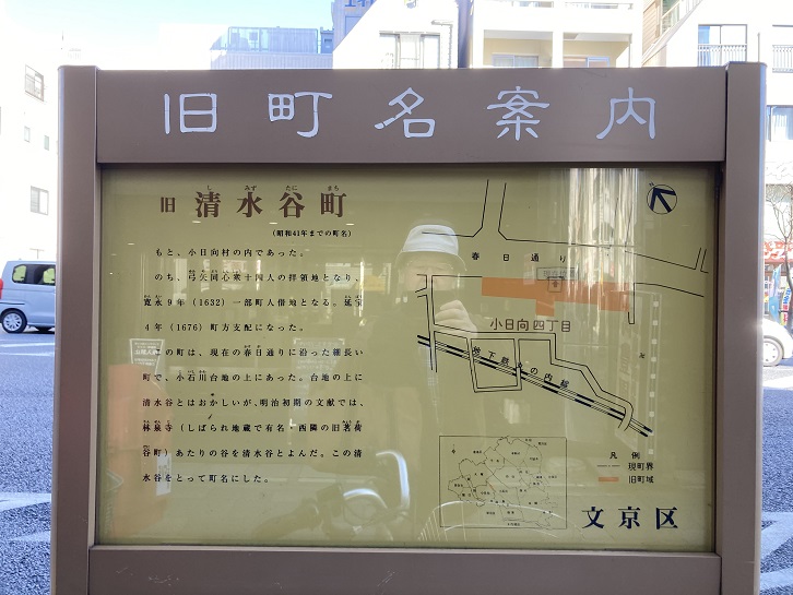 小石川4丁目辺りは、かっては竹早町という地名でした。江戸期に御箪笥町という町名があった場所ですが、「箪」の字を分解して「竹早」の町名としたといわれます。現在でも、東京学芸大学附属竹早小学校・中学校とか東京都立竹早高等学校とか、付近の学校名や公園名などに竹早の名が残されています。