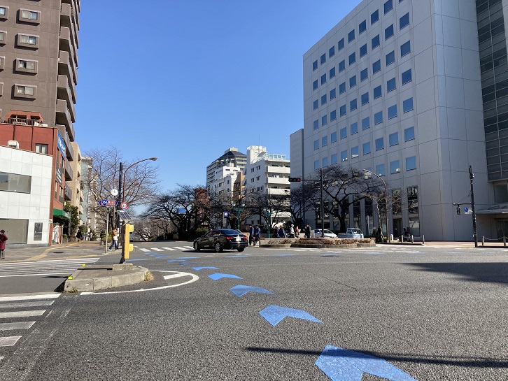 小石川5丁目交差点から東の方向に緩やかに下る広い通りが延びています。道路の中央は公園を兼ねた緑地帯となっていて、桜並木が続いています。播磨坂と呼ばれる通りは戦後に計画された環状3号線の一部で、春日通りから千川通りへ下る500メートル程のみが昭和三十年前後に完成しました。外苑東通りの延長上にあたる道路ですが、現在も播磨坂の前後は工事未着手で、突如現れる道幅の広い大通りは不自然に見えます。ここに桜の植樹が行われたのは昭和三十五年のことですが、現在では立派な桜並木に成長し、文京区でも有数の桜の名所となっています。