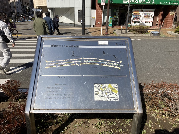 この通りは、戦災復興事業における付近一帯の土地区画整理によって、都市計画道路環状三号線の一部として造られました。江戸時代、この辺りは松平播磨守の上屋敷でした。また、千川(小石川)が流れる低地一帯には「播磨田んぼ」が広がっていたことから、新しくできたこの坂を「播磨坂」と呼ぶようになりました。立派なさくら並木(現在127本)は、昭和三十五年に「全区を花でうずめる運動」で値えられた若木(樹齢15年)が育ったものです。昭和四十七年からに、毎年4月初めに「文京さくらまつり」が行われ、多くの人々に親しまれています。平成七年(1995年)3月には、全体が「水と緑と彫刻のある散歩道」として整備され、年間を通じて楽しめる新しい名所となりました。