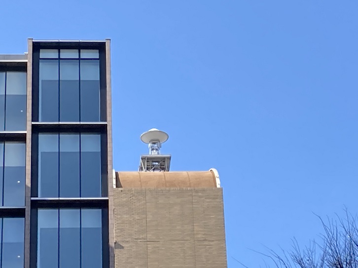 富坂が始まるところに中央大學理工學部の校舎が建っています。以前は校舎の屋上にくるくる回る奇妙な装置がありましたが、現在はアンテナらしきものが上空をにらんでいます。大学のHPによれば、気象センサーや全天カメラなどのスカイモニターを納めたミニドームらしいです。くるくる回っていた装置も気象レーダーか何かだったのでしょう。