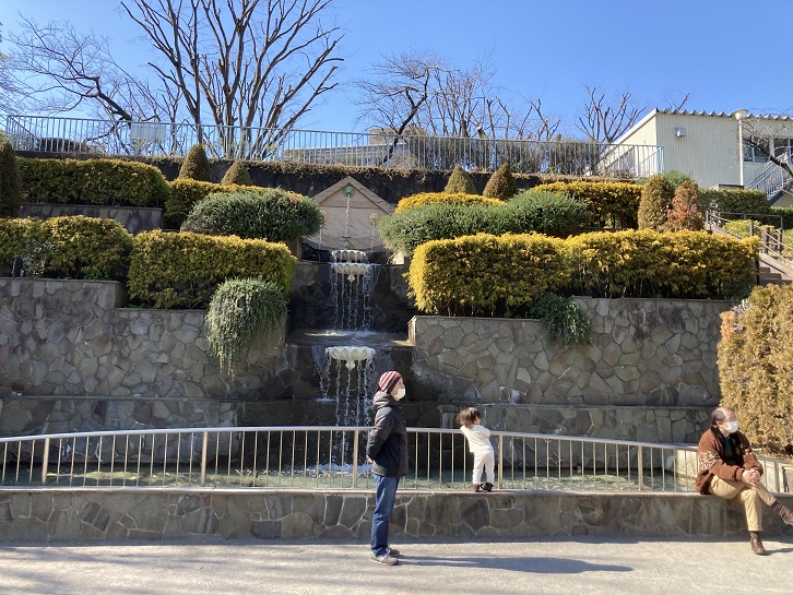 ついでに礫川公園の中に入ってみます。手入れの行き届いた綺麗な公園で、人工の滝も造られています。
