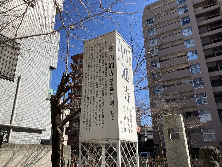 円通寺の板碑四基の内、三基は鎌倉時代末期の紀年銘をもち、区内に現存する板碑の中でも古い時代に属する。とりわけ永仁四年(1296年)十月日銘は、日慶寺の正応二年(1289年)銘に次いで二番目に古い年号を有し、南千住における鎌倉時代に人びとの生活を知るうえで貴重である。また、嘉暦四年(1329年)正月二十九日銘は、薬研彫りで精巧な彫刻が施され、造形的にも優れている板碑といえる。