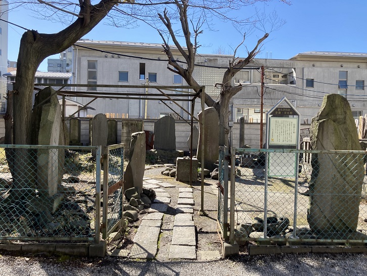 The Shogitai Warriors (on the Bakufu side) who were killed in the Battle of Ueno, which took place in May 1868 at the end of the Edo period, were buried here. Having assembled at Kan'ei-ji Temple, a family temple of the Tokugawa Shogunate, the troops were defeated in a fierce battle with the new government's troops and ?ed from the mountains of Ueno. The priest Butsuma of Entsu-ji Temple, who saw the bodies of the soldiers strewn everywhere, obtained official approval to c????te the corpses and bury the ashes on the grounds of Entsu-ji Temple, jointly with Mikawaya Kozaburo, a purveyor of Kan'ei-ji Temple. By v??ue of this event, the black gate of Kan'ei-ji Tmple (designated cultual property of Arakawa City) was transfered to Entsu-ji Temple in 1907.