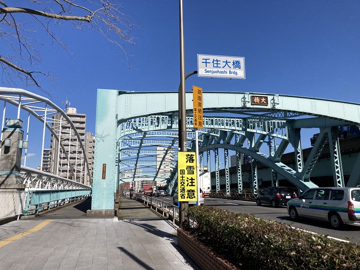 隅田川に架かる千住大橋のアーチには、「大橋」というプレートが掲げられています。元祖、隅田川に架けられた橋という自負が感じられます。