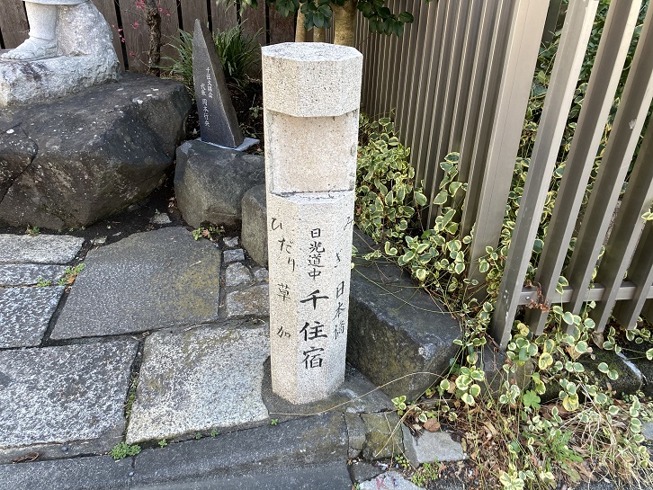 歩道横の小さなスペースに案内板が立っています。坂本龍馬が伴侶になって千住に腰を落ち着けていたら、幕末の歴史も随分と変わっていたことでしょう。