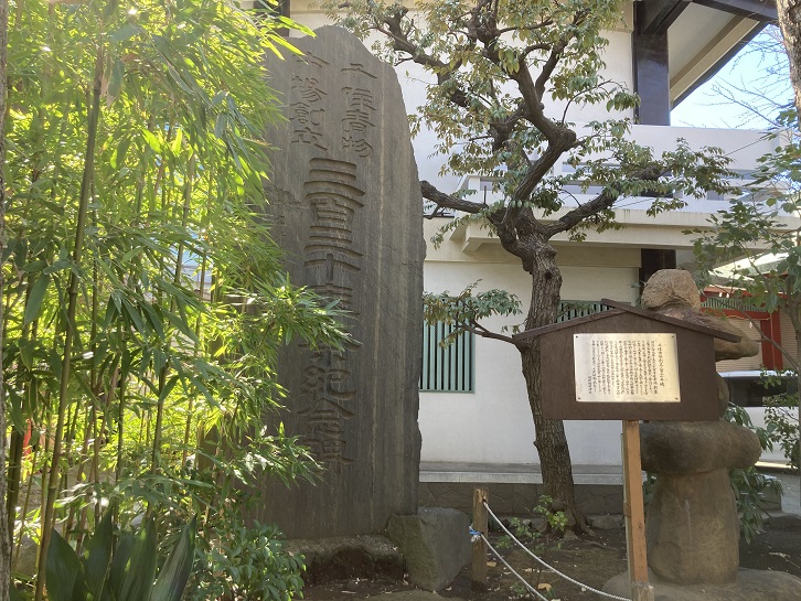 千住大橋の袂に石碑が置かれています。なかなかに読み取りにくい彫文です。