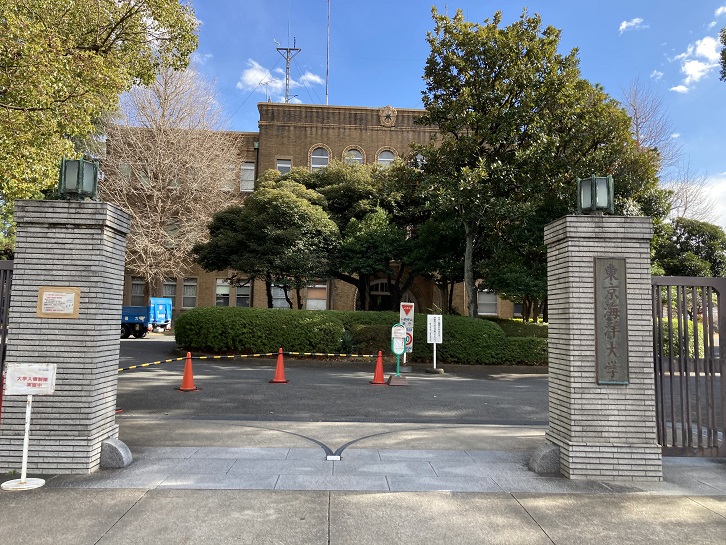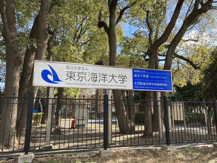越中島には東京海洋大学のキャンパスがあります。東京海洋大学は、海洋の研究・教育に特化した大学です。平成十五年(2003年)10月に共に120年以上の歴史を持つ東京商船大学と東京水産大学が統合し開学しました。2004年4月から学部生の受け入れを開始しました。工学部では乗船実習が義務となっています。旧東京商船大学は長年日本商船隊を支えた船乗りを輩出し、水産立国の礎を築いた旧東京水産大学とともに、現在でも海に関連する科学・工学的な専門分野における教育と研究でその良き先達となることを目指しています。越中島キャンパスには海洋工学部が置かれ、船舶職員の養成とロジスティクスの分野の教育と研究を行っています。海洋工学部(東京商船大学)の前身である私立三菱商船学校は、明治八年(1875年)11月に設立され、1925年に東京高等商船学校に改組されました。海洋科学部(東京水産大学)の前身である大日本水産会水産伝習所は、明治二十一年(1888年)に設立されました。両学部とも120年以上の歴史を持っています。当初、商船学校は永代橋袂の霊岸島(現在の中央区新川)に繋がれた成妙丸を校舎としていましたが、後に水産伝習所の校舎があった越中島に移設されました。東京高等商船学校は明治・大正・昭和を通して難関校として有名で、俗に「陸士・海兵・高等商船」と受験生から呼ばれ、陸軍士官学校・海軍兵学校と並び称されるほど全国から秀才が集まっていました。