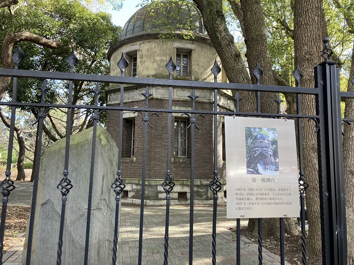 明治三十六年(1903年)6月建設。赤道儀室と呼ばれ、内部には当時東洋一と言われた天体望遠鏡を備え、教育研究に使用された。平成九年(1997年)12月国の登録有形文化財に指定された。