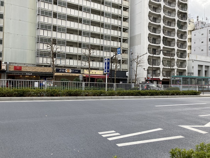 新大橋通りと交差する森下駅前交差点の近くに観光案内板が立っています。