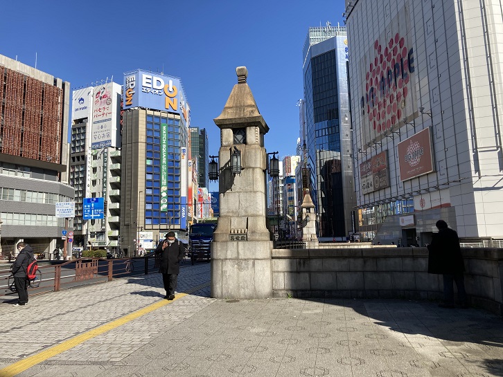 万世橋を渡ると、中央通りに沿って秋葉原電気街が続いています。秋葉原は第二次世界大戦後、闇市として発展しました。高度経済成長とともに、多様な電子機器や部品を取り扱う店舗などが建ち並ぶ日本一の電気街として発展しました。その後、バブルの崩壊や大型家電量販店・ディスカウントストアの台頭などによる家電市場の衰退で電器店は主力商品をパソコンに移していきました。これによって、パソコンマニアが集中し、秋葉原は一転してオタクの街として変貌を遂げました。世界的な観光地としても注目されるようになりましたが、2010年代以降はネット販売の普及と地価上昇、それに昨今のコロナ禍などでオタク向けの小売店が軒並み閉店し、代わって大資本によるコンセプトカフェが進出し、区画整理の推進などもあって今ではオフィス街に変貌しつつあります。