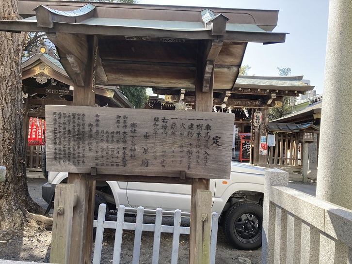 神社の由緒書きには古めかしい文体で社歴が紹介されています。
