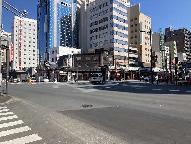 寿四丁目交差点を左折して一旦浅草通りから外れ、国際通りに入って直ぐの次の雷門一丁目交差点を右折して雷門通りに進みます。