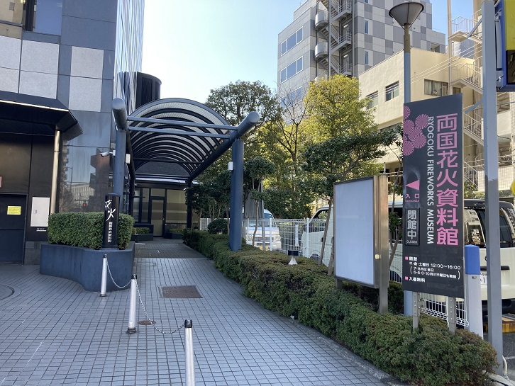 両国花火資料館は、江戸花火の歴史や芸術性を紹介・展示している江戸情緒溢れる資料館です。平成三年(1991年)、花火の歴史や芸術性の理解を深める施設として、日本の納涼花火大会発祥の地である両国に創立されました。享保十八年(1733年)、八代将軍徳川吉宗が前年に起こった飢饉の死者への供養として水神祭と施餓鬼会を行ない、その例祭で花火を打ち上げて両国川の川開きを行った事から、両国は花火発祥の地と言われています。館内には、花火の歴史や花火玉の断面の模型、それに花火を打ち上げる花火師の舞台衣装「半纏」が展示され、花火師の心意気が感じられるようになっています。また、係員が現在の花火の製造方法をビデオを使って丁寧に説明してくれるサービスも行っています。夏の花火シーズンには企画展や特別展示なども行なわれ、花火の歴史から現在までを視覚的に楽しむことができます。花火の絵葉書なども販売され、お土産品として人気になっています。曜日限定で開館しているため、残念ながら今日は休館日になっています。